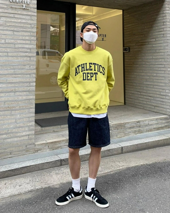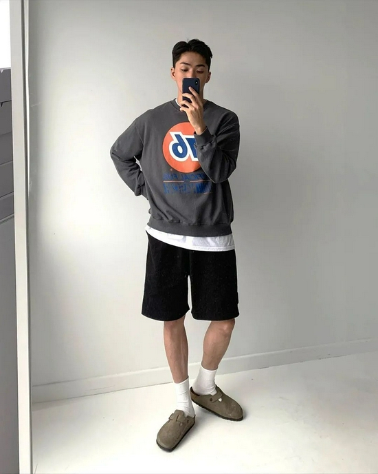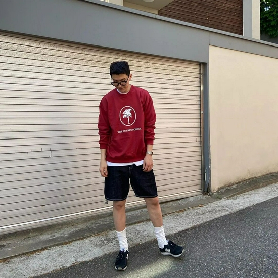 虽然常常被攻击不知道是冷还是热,但是上长下短的穿法真的很有趣啊。上半身多是长袖的卫衣、衬衫或者外套,搭配短裤真的很有休闲随性的感觉。