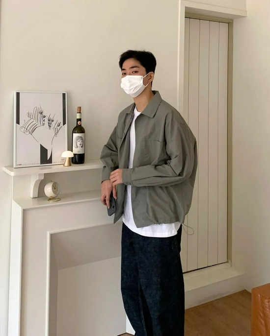 这样的穿法对外套长度有一定的要求,男生的短款外套还是比较难找的,建议大家看看牛仔外套,面料也不会太厚适合秋天。