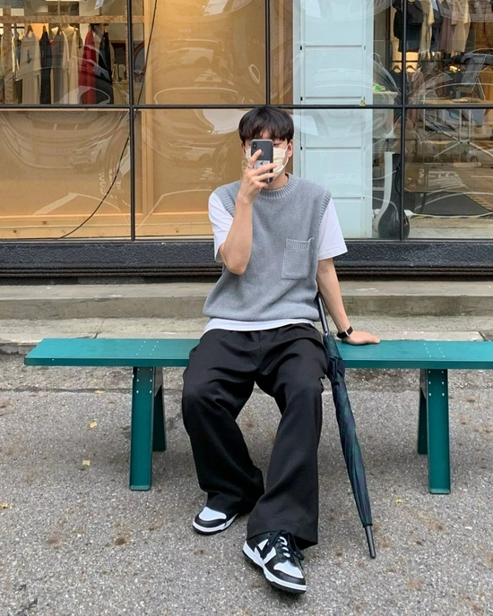 首先是 Polo 与长袖内搭的结合,全套单品从上衣都裤子都偏向宽松的,很简单就能穿出 Cityboy 的感觉,对自己身高自信的同学可以尝试尝试。