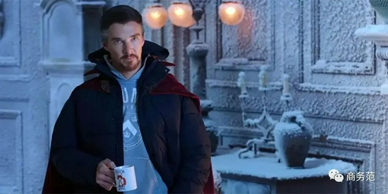 比如前阵子《蜘蛛侠3》预告发布,本尼饰演的“奇异博士”冬季搭配就亮了,酒红色魔法斗篷+黑色羽绒服+天蓝色帽衫,混搭玩儿得666。