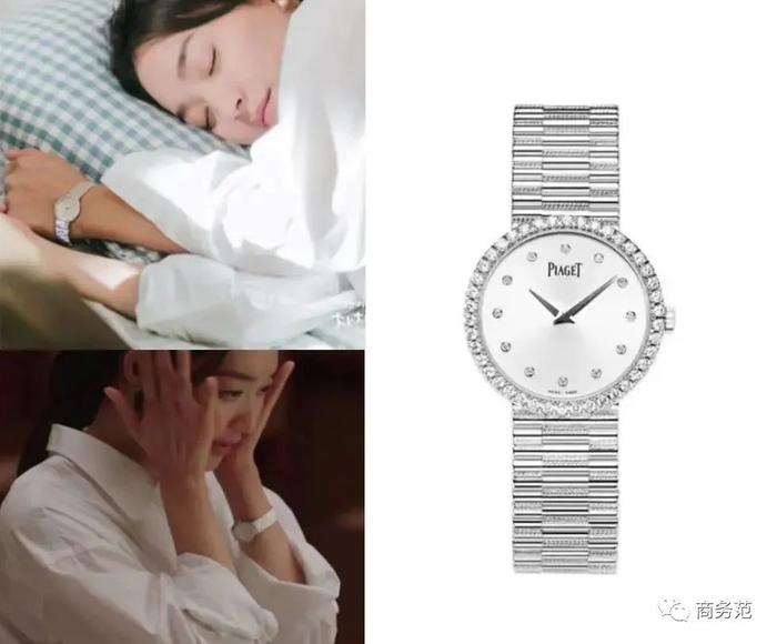 全剧最贵单品应该要数这枚伯爵Traditional系列腕表,白金表壳镶嵌42颗钻石,公价413000元。