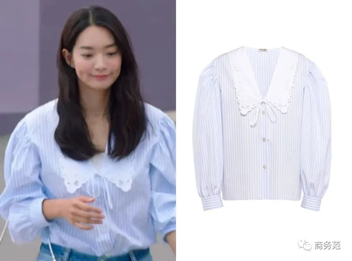 尹惠珍还很擅长用泡泡袖元素来减龄,这件Miu Miu衬衫融入了泡泡袖和方形翻领,非常可爱俏皮。