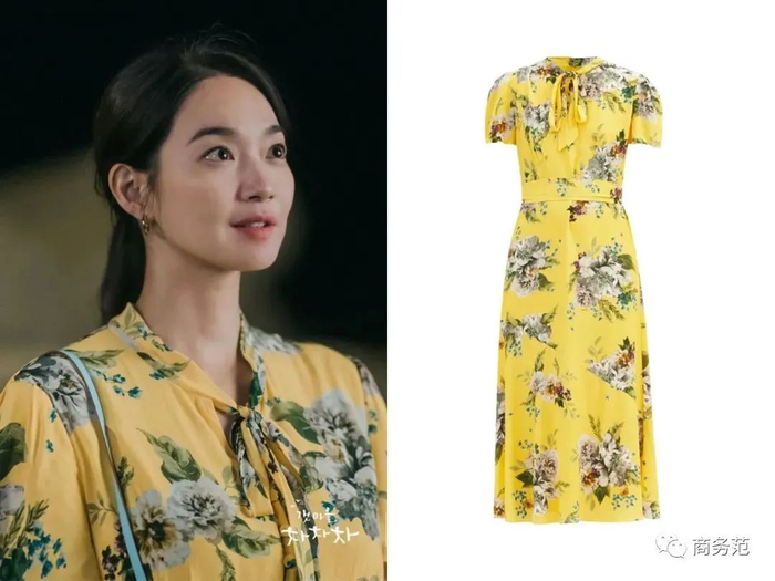 尹惠珍的连衣裙也以纯色为主,设计不算花哨,但是版型都很考究,上身效果很出众。