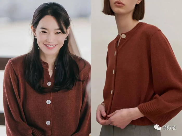 尹惠珍的针织look也有不少,略微修身的款式,既显得温柔干练,又能勾勒身材曲线。