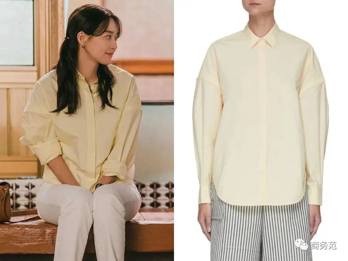 要说尹惠珍出镜率最高的单品,莫过于衬衫,带点恰到好处的设计感,无论是搭配牛仔裤还是半裙,简洁清爽就很好看。