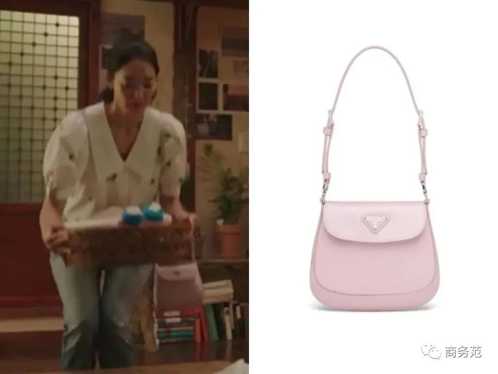 除了爱马仕,其他大牌的火爆新款也都集齐。尹惠珍会用一些彩色包包来点亮穿搭,像是粉色的Prada Cleo迷你款↓