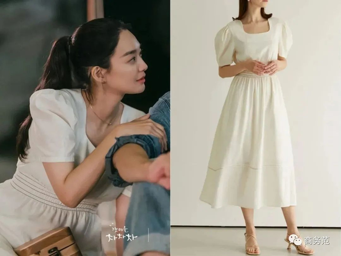 白色小方领连衣裙清新浪漫,来自韩国品牌ahwe,1000元出头的价格也很可爱。