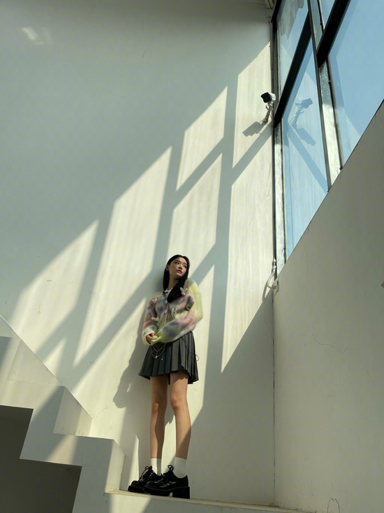 林允的私服就挺喜欢这么穿的,毛衣搭百褶裙,再配上一双小皮鞋,和她长相、气质比较相符的女孩们,这个搭配是经典公式。