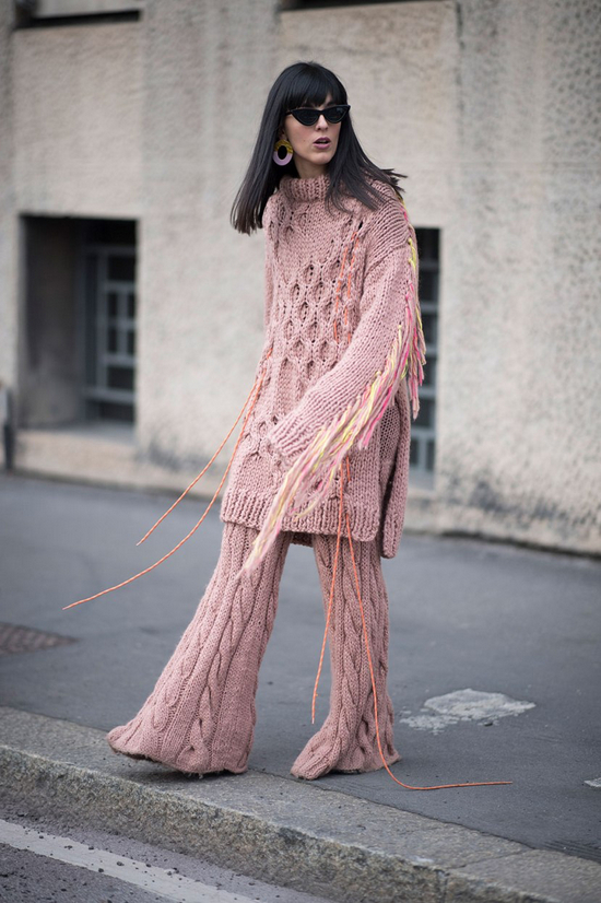 除了毛衣单品,毛衣套装也有大火的潜质,在秀场和博主那里都可以看到它的身影。