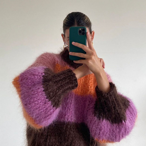 稀饭学院风的报友们看过来,条纹相间亮色系毛衣请首选考虑,可以搭配同样休闲感的灯芯绒长裤,脚踩一双厚底靴,有点丧丧风格的学院系搭配,这不就有了么~