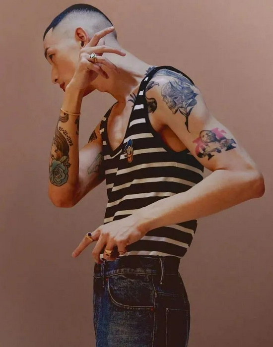 当初吴赫还是因为自己的发际线比较高,很多发型都不匹配气质,然后索性选择了把所有头发都剃掉了。
