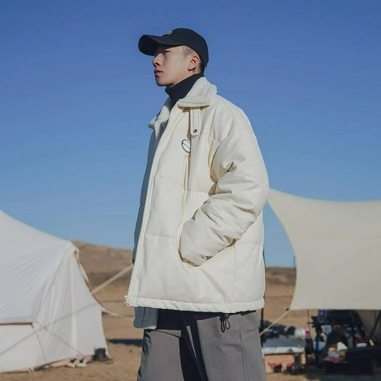 羊羔绒自带给人一种暖暖的感觉,冬天穿上秒变大暖男。绒绒的毛边让简单的棉服多了几分时尚感。