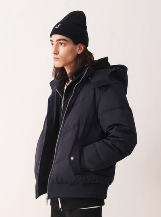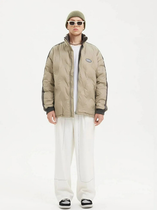 拼接压花的设计区别于传统羽绒服单一的款式,让整体显得不那么臃肿。色彩的拼接不会过于花哨又打破了纯色的单调。
