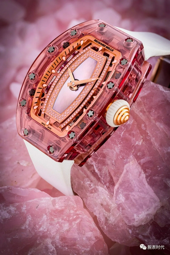 粉红色蓝宝石及 18K 红金镶钻石女装镂空自动上弦腕表,配贝母表盘,