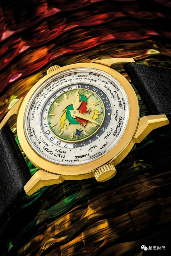 配掐丝珐琅表盘的双表冠 2523 实属首屈一指的世界级珍品之一;与钢制 1518 和第一代的 2499 齐名,一同占据着百达翡丽殿堂中至高无上的神圣地位。大明火珐琅工艺赋予腕表永恒不灭的魅力,结合 1950 年代极具个性的简约设计,此枚掐丝珐琅‘北美’世界时间腕表绝对是百达翡丽‘黄金时代’的代表作之一。