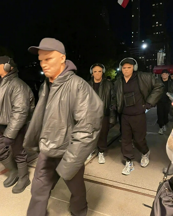 纽约街头一眼望去,清一色的黑色夹克上衣、黑色长裤与硅胶面具,而Ye本人最近青睐的Balenciaga X Crocs长筒厨师靴入手难度较高,不少“复制人”也选用X-Pander或YEEZY NSLTD BT KHAKI作为平替。