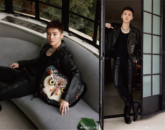 身为Gucci品牌代言人的鹿Boss一向以温柔阳光形象示人,但是穿上机车皮衣立刻有了生人勿进的禁欲感,细节满分的全黑装扮又酷又野,一个眼神过来,心脏都会漏跳几拍。