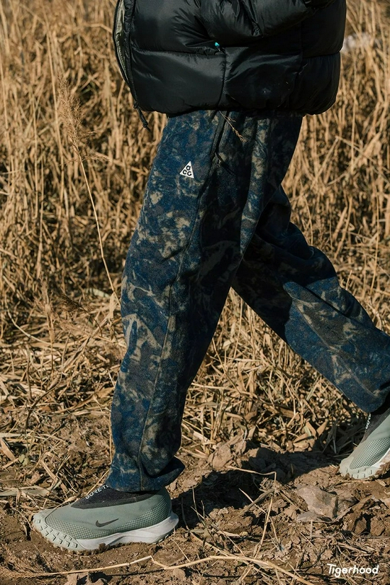 所以今天的整体造型,我以这件黑色的 NIKE NRG TFADV ACG LUNAR LAKE JKT 为主,内搭则用 NIKE ACG Therma-FIT ADV 马甲,以及全新的 NIKE ACG 独特迷彩风格的帽衫和裤装来进行细节和层叠造型的修饰。