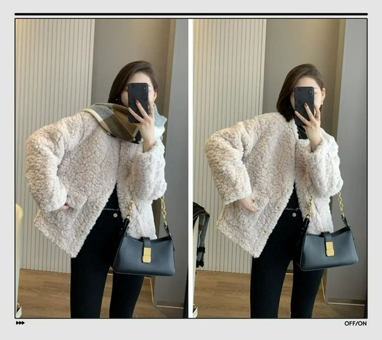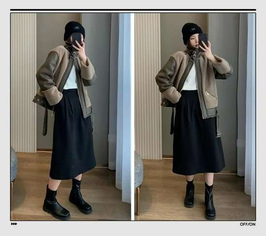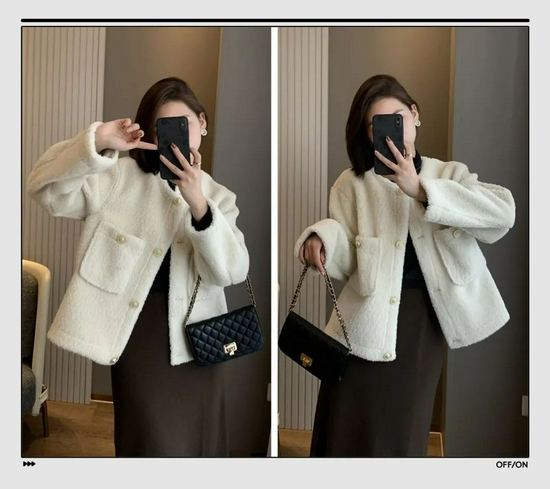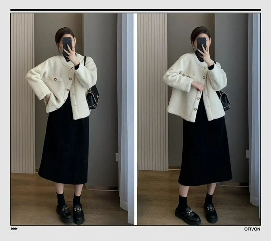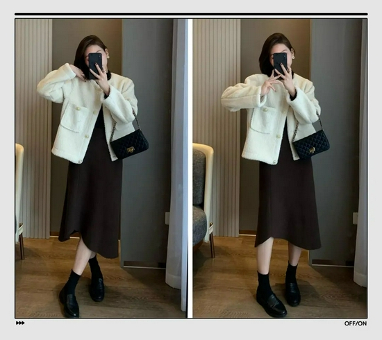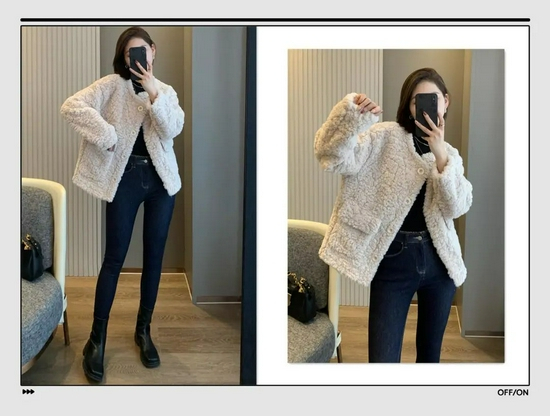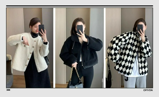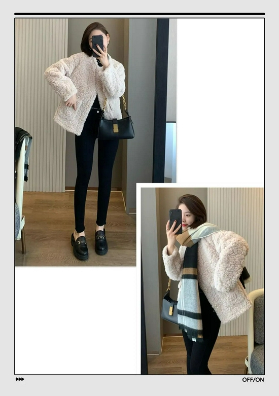大家在挑选羊羔毛外套的时候是会选择短毛还是长毛的呢?告诉大家一个知识点,羊羔毛长超过3cm,视觉上就会显宽大,也容易穿出土气。