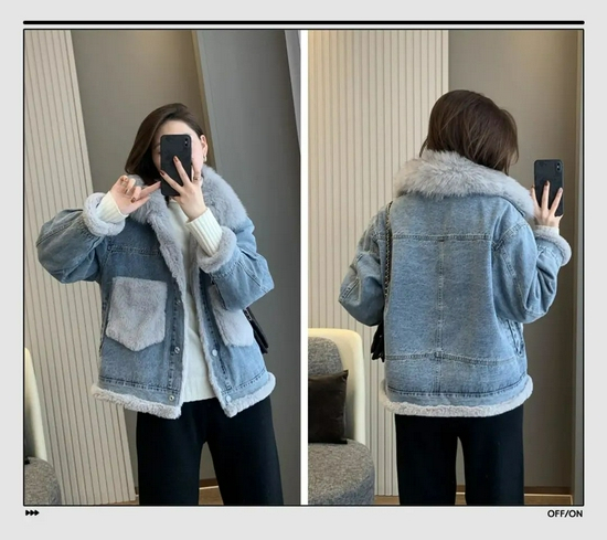 上面的两件是短款,而这件则是超短款,内里有羊羔绒不用担心穿它会冻到。小个子女生想显高必须“买它”!