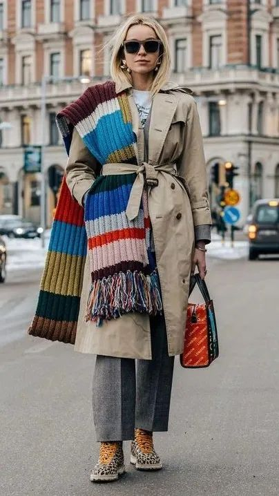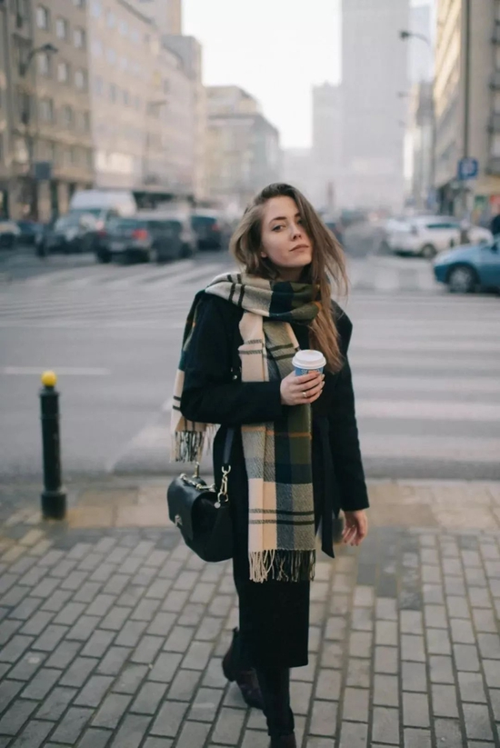 纯色围巾之外,还有复古英伦格纹款,气质高雅出众,也是深得人心。几种颜色的拼接条纹围巾本身就很有看头,在挑选围巾样式的时候,不妨参考这种超长款的大围巾,保暖的同时非常提升个人气质!