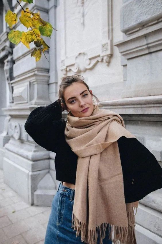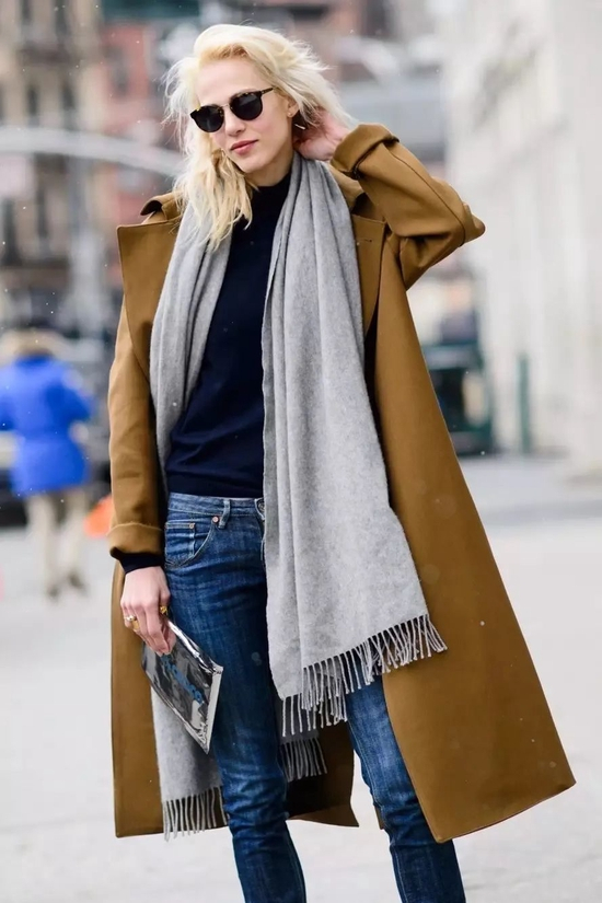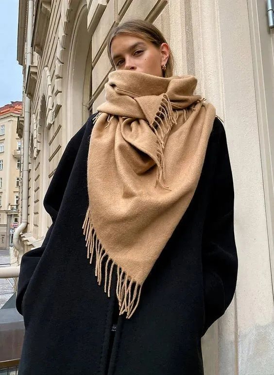 驼色是与秋冬适配度最高的颜色,如果你没有入手一件驼色大衣,那么驼色的围巾一定记得拥有,分分钟搭出高级质感。