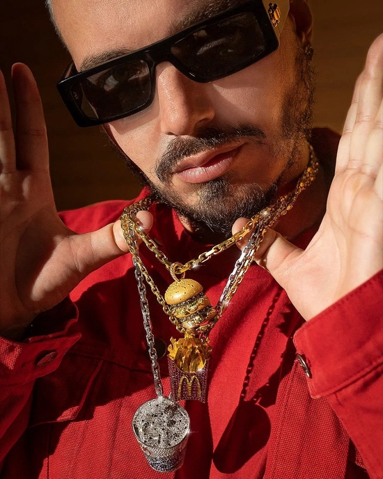 J Balvin 找到定制珠宝品牌 Saint Jewels,以麦当劳套餐为原型打造项链。