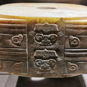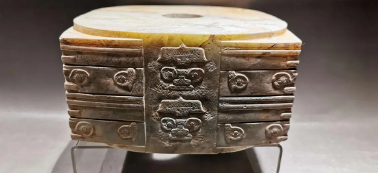 良渚时代,最重要的祭祀和礼仪用的玉器,四角刻有神人兽面像,雕刻十分的精致。