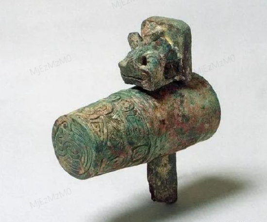 古代车上的零件,青铜制,形如圆筒,套在车轴的两端。軎上有孔,用以纳辖。纹饰大气,是贵族所乘之车的附件。