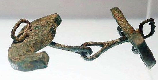 车辖呈长条形,与车軎配合使用,也就是车轴上的销子,插入轴末端的方孔内,以防车轮脱出。西周青铜车辖顶部多有虎首、猪首、牛首装饰,春秋战国逐渐简化纹饰,更趋实用,西汉以后以铁铸造。