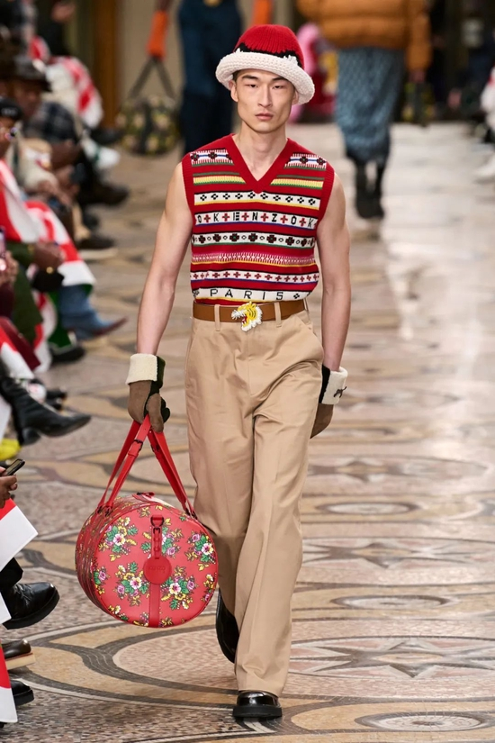 其中也包括在本季最受关注的品牌秀场之一 —— Kenzo 。在 2022 年最新系列中,秀场中充满现代印花和美式复古元素,其中毛衣背心也采用鲜亮色彩,展现出希望、生机及热情气息,整体感觉轻松明快。