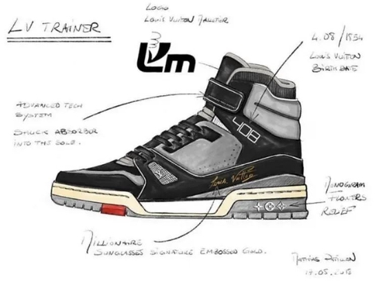 2020年,LV主打的球鞋LV Trainer掀起了一股复古篮球鞋的⻛潮,无论在奢侈品圈还是街头潮流圈都引起了不小的关注。