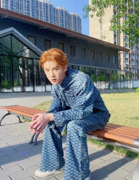 染回橘发的黄明昊又是那个少年 Justin 了,复古老花牛仔套装来自韩火火主理的品牌 DNT,还有同款印花的渔夫帽可以搭配,微喇牛仔裤今年也是不管男女都很流行的牛仔单品!