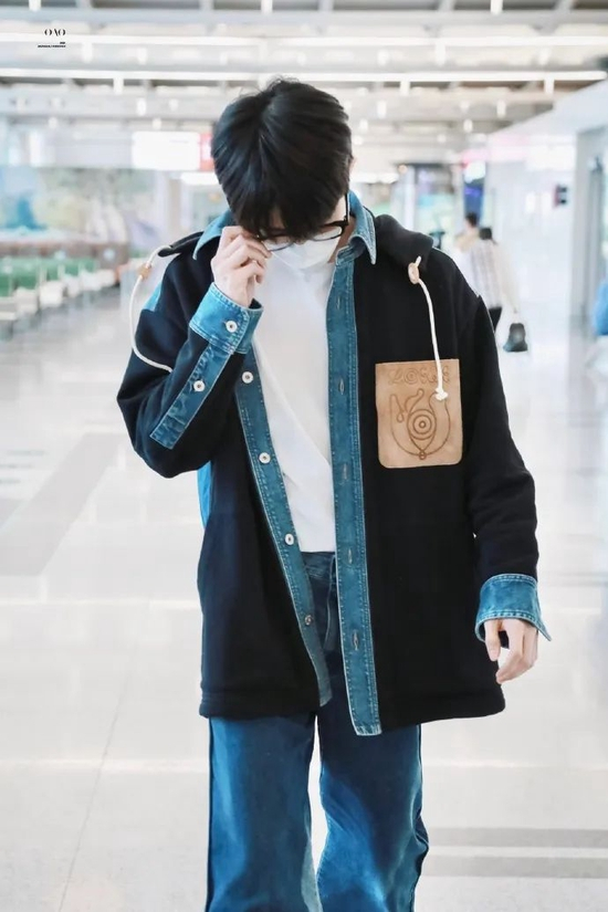 韩国男团 NCT 中国成员董思成的这件 Loewe 牛仔外套十分别致,解构拼接了丹宁衬衫和黑色连帽衫外套,让人眼前一亮,内搭同品牌 Loewe 白 Tee,Gentle Monster 眼镜增加清纯男大学生气质,下半身穿着韩国设计师品牌 WOOYOUNGMI 牛仔裤,首尾呼应的一身牛仔穿搭。