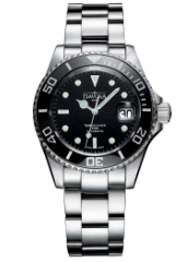 简洁的黑色表盘,搭配大气的高亮涂层的指针和刻度,读时清晰,无惧黑夜。耐用的德国钢旋入式底盖,和四点钟位置独特表冠搭配,防水深度达到1000米以上,只专业的航海腕表。一句话,陪你上天下海都没问题。