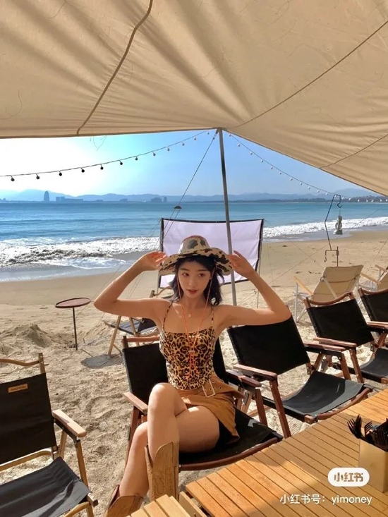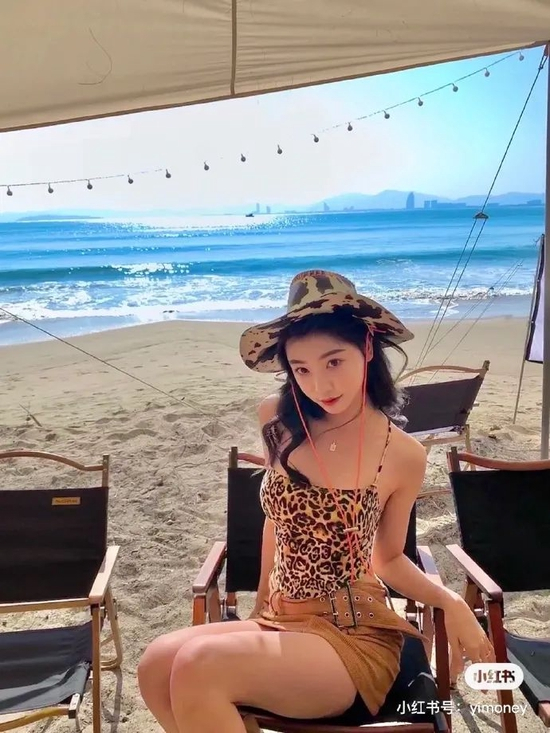 易梦玲的海边露营写真,照片中还出现了马师的身影,对比马师随意的老头背心易梦玲非常精心搭配了西部世界风的露营穿搭,豹纹吊带工装短裙搭配奶牛图案宽檐帽,(这顶帽子之后还出现在了马思唯的头上)全身只要一百块,会穿又会买~