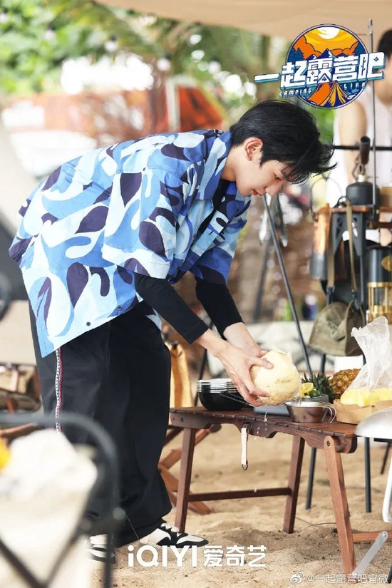 王哥曾经的队友朱正廷也即将在后期节目中担任嘉宾,预告中他身穿 Prada 2022 早春飞行夹克,搭配国潮品牌 DND4DES 工装裤,佩戴 Gentle Monster 墨镜,脚穿最近在某书很火的 SMILE REPUBLIC 球鞋,非常有野生感的一套露营穿搭~