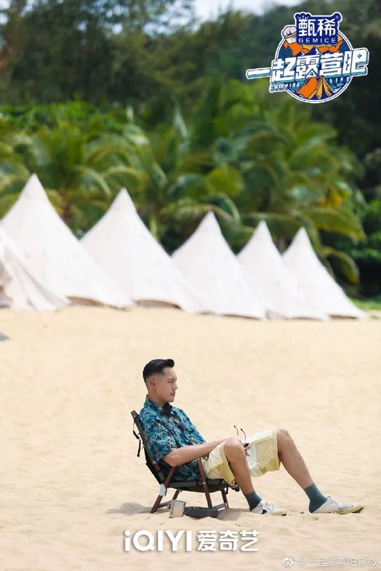 《一起露营吧》第一集中陈伟霆的露营穿搭是日系简约风,他身穿日本 Tokyo Base 旗下的服装品牌 United tokyo 白色长袖 Tee,下身穿着日本生活品牌 Beams 工装裤,搭配自家 Canotwait Logo 白袜和 Golden Goose 五角星帆布鞋,谁都可以模仿的百搭露营 Look~
