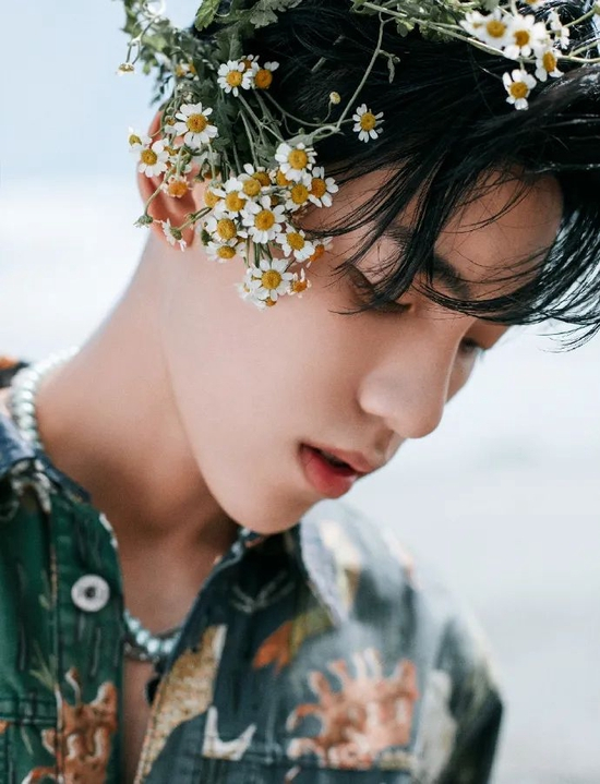 虽然大家都对“王哥闹海”印象深刻,但王子异身穿这身 LOEWE 海洋世界印花的牛仔套装的海边写真风格和日常好不一样,海洋世界印花充满了小王子的纯真感,搭配向日葵以及别在耳后的小雏菊花束就更有易碎感了,好文艺的王哥!