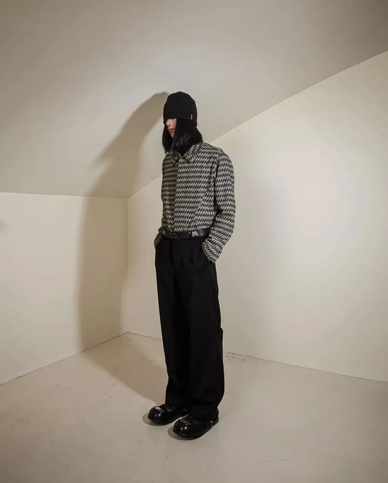 在品牌第一季 2022 秋冬系列的 Lookbook 中,模特鞋款几乎被一双漆皮圆头鞋套承包,鞋头被钢片覆盖,上脚后更是神似当年 Raf Simons 联名 Dr.Martens 的铁头马丁靴。如果用普通的皮鞋搭配可能无功无过,但加入了类似 Safety Overshoes 后,整体造型可谓更加考究,也能体现出品牌在细节方面的特别用心。