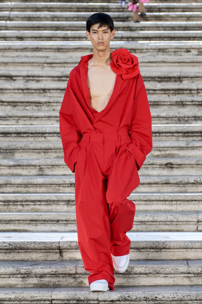 “在今天,高级订制服不再单单关于美丽和奢侈,它需要是现代的,具有包容性的”,Piccioli如是说。那些原本不属于高定系列的背心、短裤等日常着装类目,皆以崭新的形态出现在Valentino的发布秀上;系列中唯一出现的一名“大码模特”,也代表着Piccioli对于高定穿着者身份多元化的肯定。
