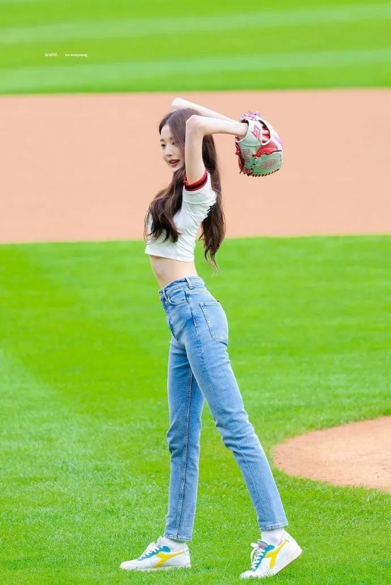 韩国女团 IVE 成员张元英最近在为韩国斗山熊棒球队开球时的一身穿搭,在棒球运动很盛行的日韩棒球服也是一种非常受欢迎的日常穿搭单品;她身穿斗山熊队队服 T 恤,被 Cody 剪裁成了露脐辣妹款,搭配紧身牛仔裤和意大利国际运动品牌 Diadora 球鞋,元英妹妹生图这个身材比例真的是真实存在的吗?不愧是发照片要把腿 P 短的美神本神!