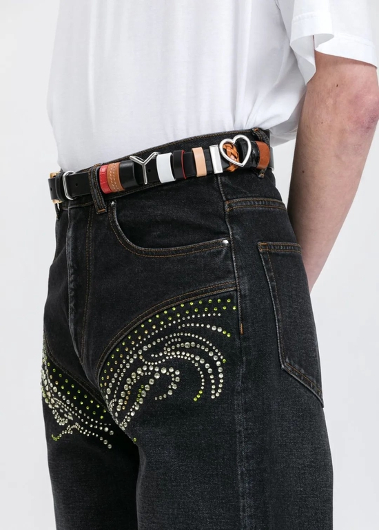 关于腰带,Y/Project 每年都会定番发售,相对于早期较为简单的款式,新上架的 Y Multi Belt 造型属性要高出不少,在保留经典 I、Y、心形 Logo 的五金配件之余,增添了多色皮革环扣。