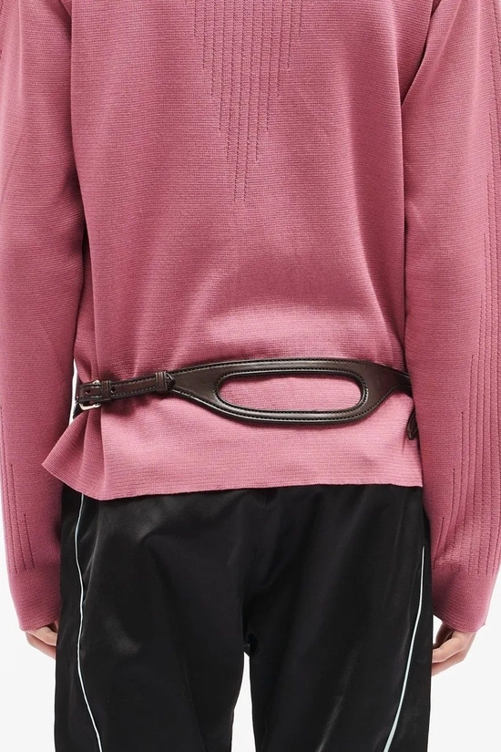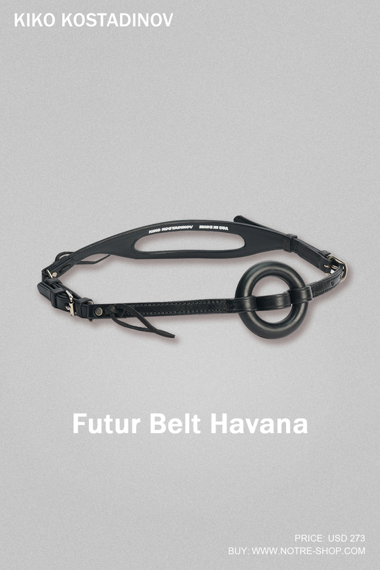 秀场造型中高频出现的 Futur Belt Havana 腰带以马术用具为设计灵感,在厚重圆环以及椭圆镂空区域的加持下带来极高的造型可塑性,且并无传统意义上的正侧面之分,可按照自身喜好随意进行调节。