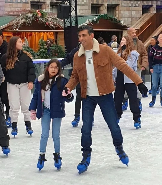 今年早些时候,人们看到苏纳克穿着一件价值795英镑的棕色‘Reiss - 蕊丝’羊毛皮夹克陪女儿滑冰。2020年,他办公桌上价值180英镑的智能保温杯也曾为他招致批评。