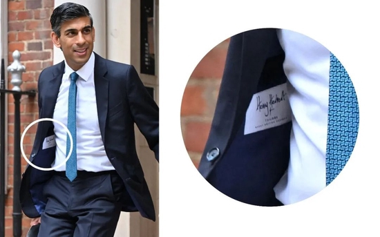 同样是选择英式定制西装,苏纳克与老牌政客不同的是他避开了萨维尔街的老牌,转而选择了像Henry Herbert这样年轻、低调的品牌。