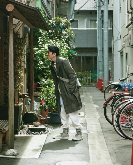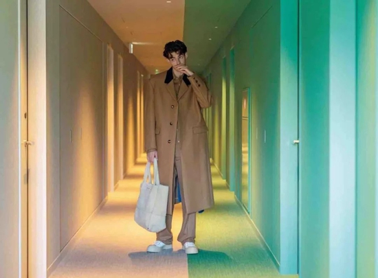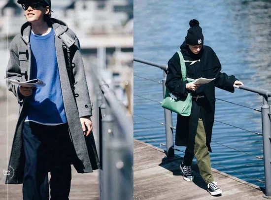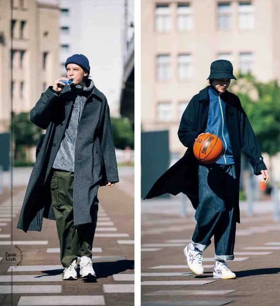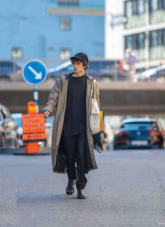 穿长风衣或者长款防风外套的时候,可以 All Black 或者 All WhiteInside。