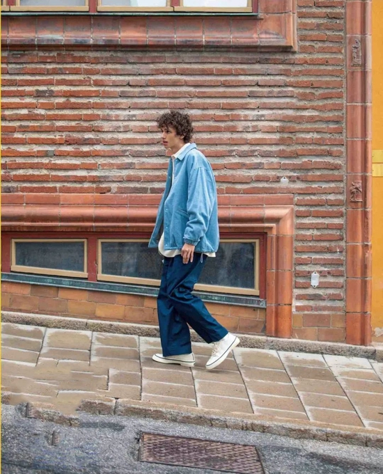 阔腿牛仔裤、更宽一些的直筒休闲裤都非常适合搭配合体的外衣。最后当然少不了你最炸街的那双球鞋!