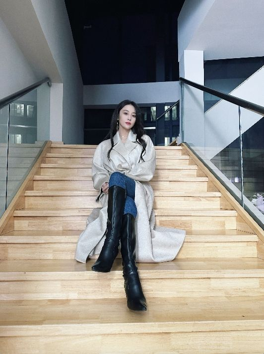 米白色的长款大衣束起腰线,衬托出迷人的玲珑曲线,配上今冬正流行的长筒黑靴,帅气袭人,与米白色大衣形成鲜明的色彩对比,紧致的牛仔裤包裹住大长腿,整体look精致又不显沉闷。尤其是张馨予五官颇具中性美感,只需要精致柔和的淡妆,就能与浅色系大衣相得益彰。在发型设计上,自然垂落的优雅长发更显魅力,发间隐约显露的精致耳饰修饰修长白皙的脖颈,整体呈现出舒适慵懒的休闲气质。