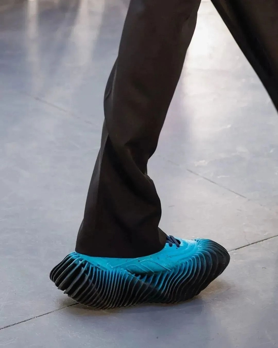 在2022秋冬‘Dear Earth’主题秀场中,BOTTER再一次用这样风格差异巨大的鞋款组合惊艳众人,只不过这次,BOTTER将Nike VaporMax跑鞋换成了adidas Predator 猎鹰系列足球鞋。